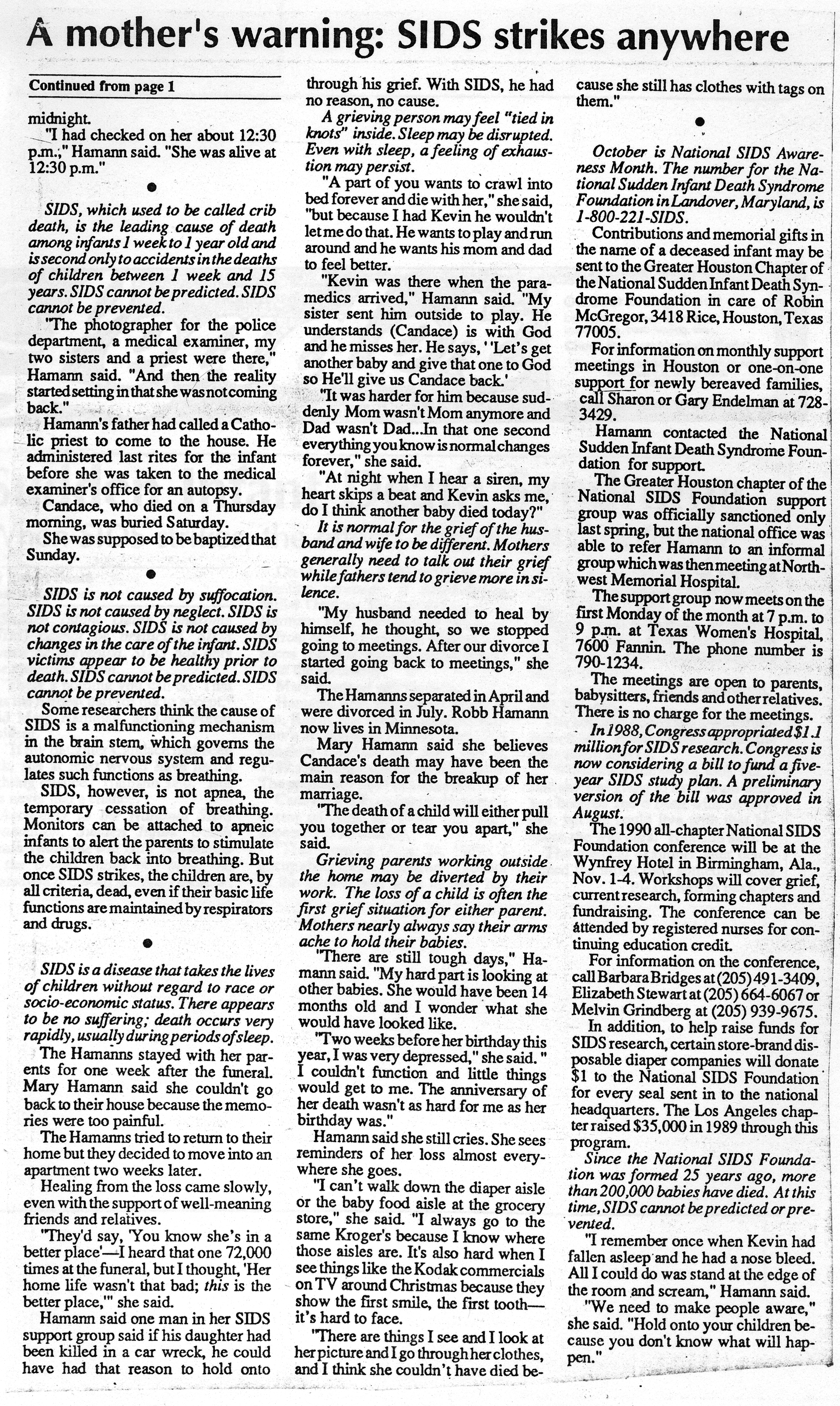 The following story was awarded first place 1991 for Best Original Feature Story by the Texas Community Newspaper Association, Inc.